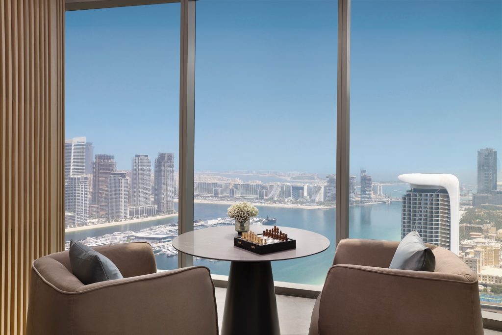 The hotel’s location cements its identity as an urban hub. Positioned at the gateway to Dubai Marina, it is minutes from JBR Beach, Bluewaters, The Walk and the tram line, offering seamless access to the city’s entertainment, retail and cultural heart. It appeals not only to leisure travellers but also to business guests and city-break visitors who want to be immersed in Dubai’s rhythm rather than retreat from it.