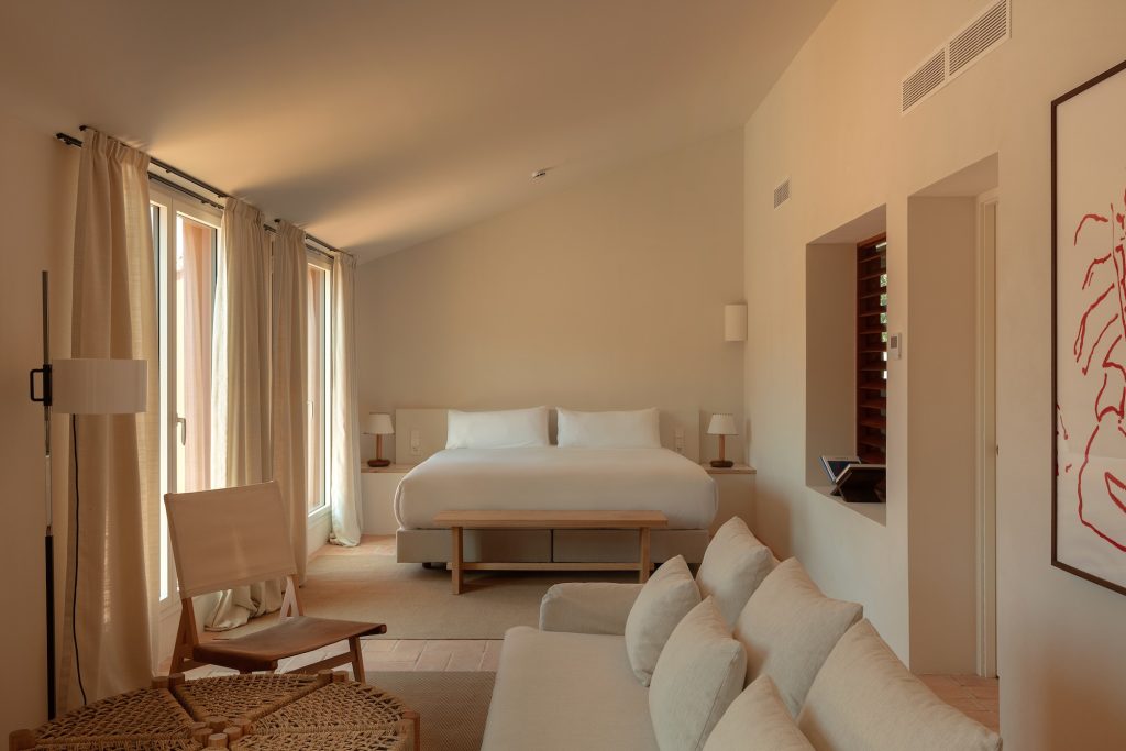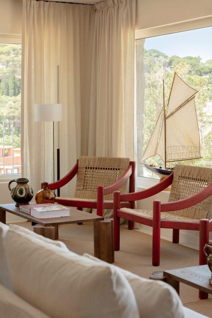 The interior design, shaped by brothers Harry and Toni Serra in collaboration with Post Company and Sarita Posadas, draws inspiration from Catalonia’s coastal masías. Stucco walls, toba catalana ceramic floors, and custom furniture by regional artisans create a palette of earth and sea, where craftsmanship and authenticity are celebrated at every turn.