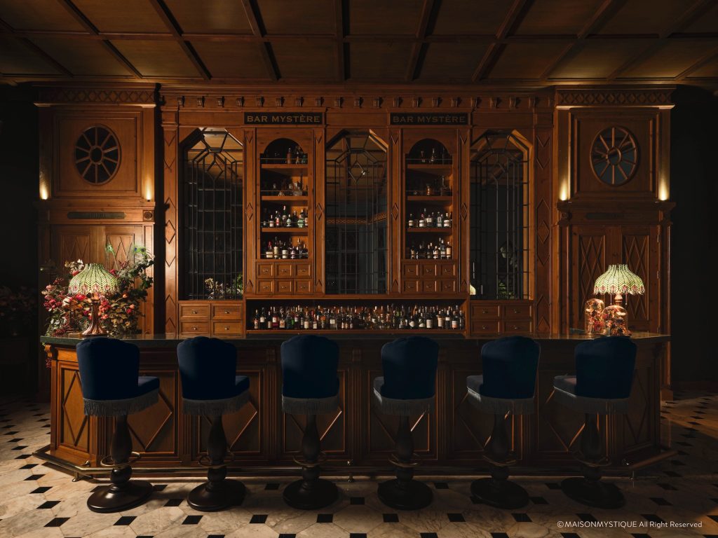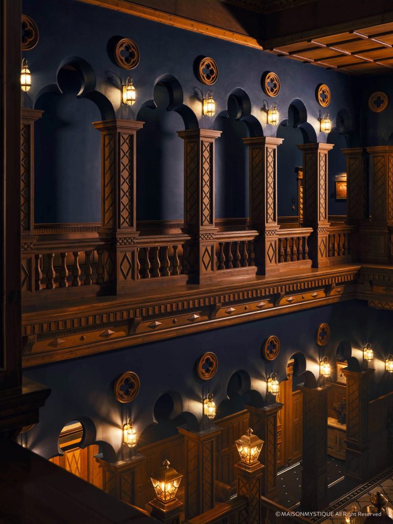 Inside Maison Mystique, each corridor, softly lit by lanterns, leads to hidden corners where antique curiosities mingle with botanical sculptures. The design combines refined elegance with a touch of whimsy hand-painted details, aged wood, and celestial motifs weave together to create an atmosphere that feels timeless, as though the house itself has been waiting patiently to be rediscovered.