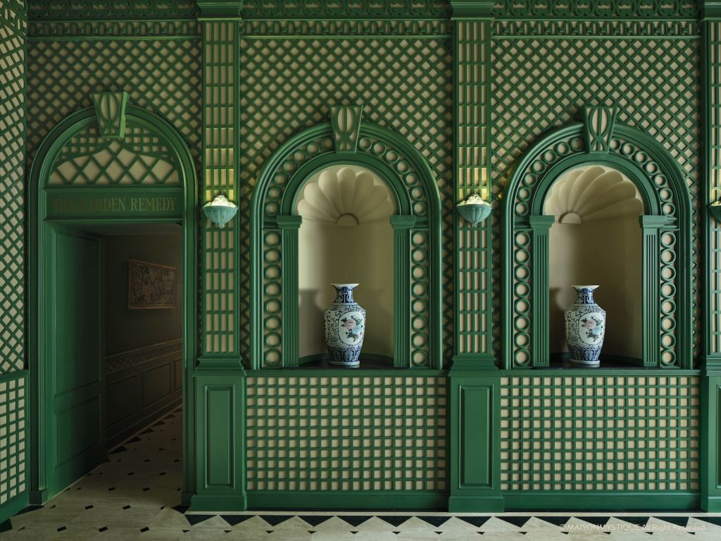 At its soul lies the Hall of Mystery, where a grand emerald marble staircase spirals upward beneath carved rosettes and indigo walls. Nearby, the Garden Hall offers a softer contrast a sanctuary of alabaster and soft greens, its treillage-lined walls and potted ferns echoing the orangeries of old Europe. Upstairs, the Hall of Starry Night shimmers beneath a hand-painted celestial ceiling, where gold stars and crescent moons make every evening feel touched by the cosmos.
