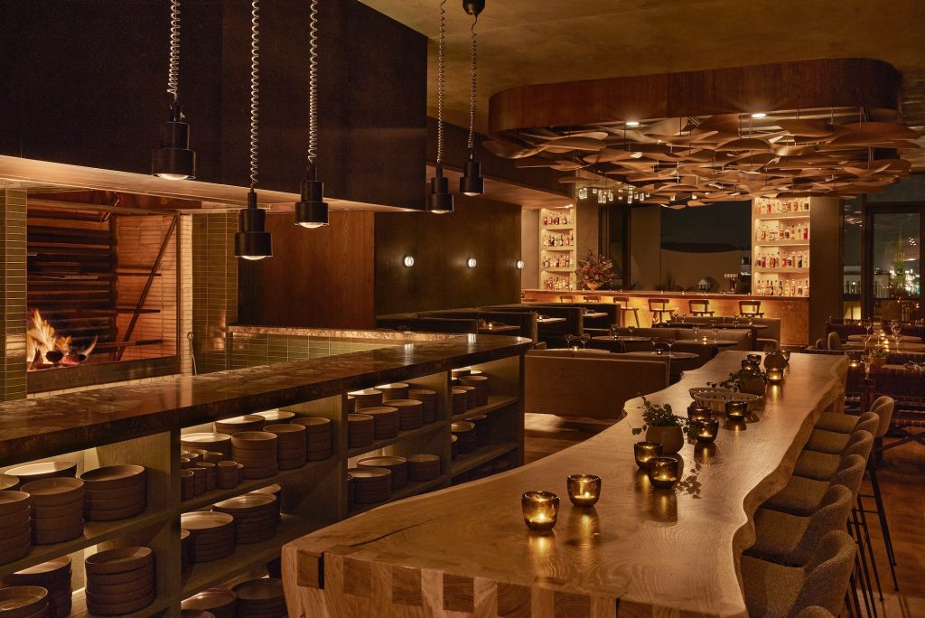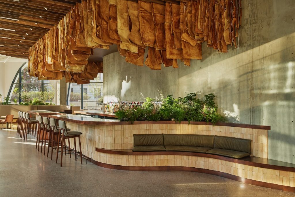Dining at Populus follows the same ethos. Stellar Jay, the hotel’s indoor-outdoor restaurant and bar, serves dishes created with ingredients sourced from regenerative farms and ranches, complemented by zero-waste practices. A biodigester processes 100% of food waste, transforming it into compost for local farms.