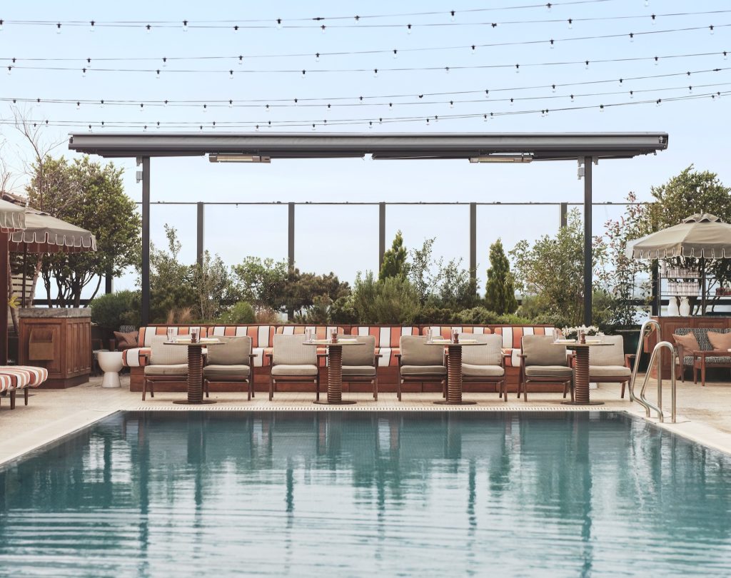 For open air swimming in central London, The Berkeley rooftop pool is the obvious reference point. The heated pool runs along one side of the roof, with striped loungers, small marble tables and views across Knightsbridge, Belgravia and Hyde Park. In spring and summer, there is a more defined poolside offer, with iced granita, cooling mists and a Riviera-style food and drink menu, and the adjoining rooftop bar is sometimes opened to non-residents under seasonal concepts such as Capri in the City. It works particularly well as a morning swim spot on clear days or an early evening reset before dinner.