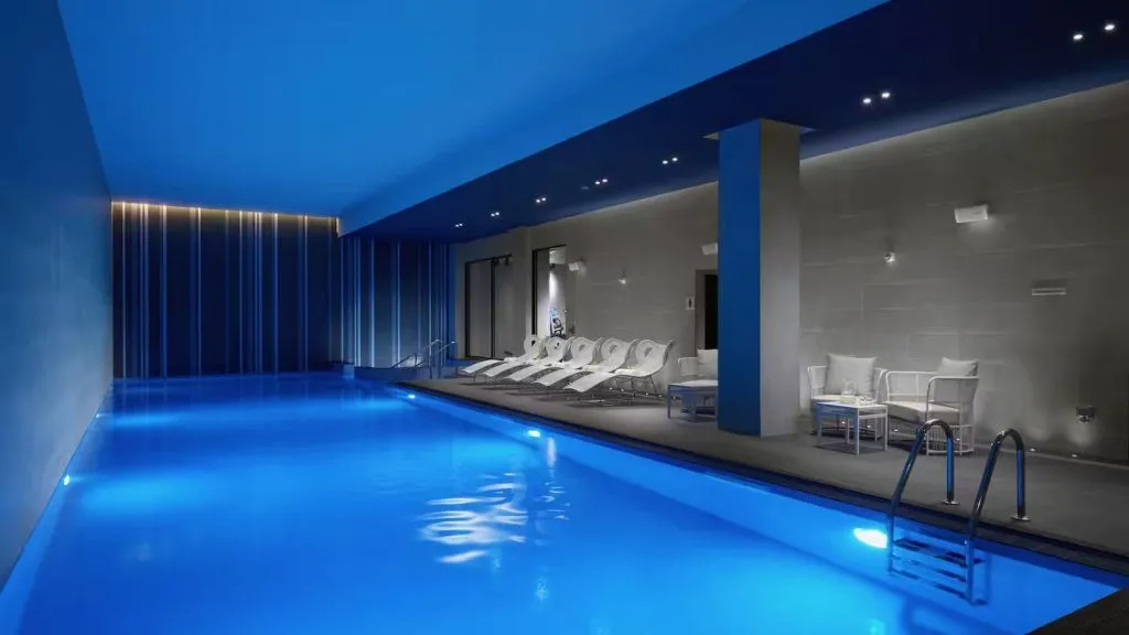 One Aldwych hides a quietly impressive health club under its Covent Garden footprint. The 18 metre pool is chlorine free thanks to a mineral cleaning system, which makes the water feel noticeably softer. Separate steam rooms and saunas sit in the changing areas, and there is a compact gym that suits city breaks rather than heavy training. It is particularly appealing if you are sensitive to chlorine or simply prefer a cleaner, more discreet pool experience after the theatre.