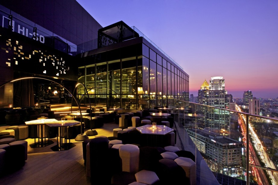 Take a seat on the 29th floor, as you look down over the lush green planting of Lumpini Park below. The swanky bar boasts a contemporary design with a trendy, clubby vibe after dark; chic seating, stylish decor, and ambient lighting set the stage for an evening of sophistication and relaxation. In addition to its exceptional drinks menu with cocktails based on star signs, Hi-So offers a selection of gourmet Thai tapas, larger international dishes and light bites. The venue hosts a monthly pool party.